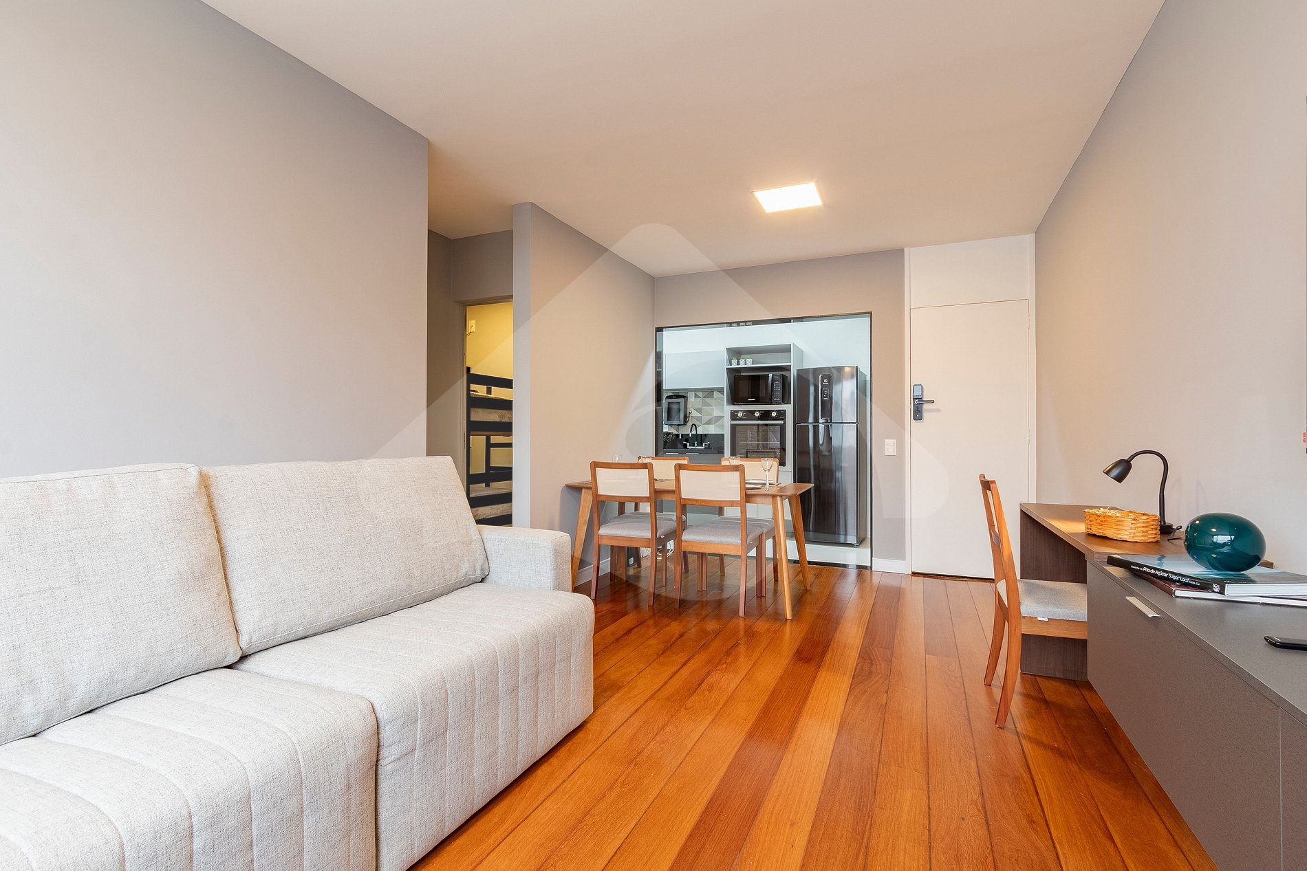 What makes this space special is the combination of comfort, design, and an unbeatable location. Completely renovated, the apartment was designed to offer a unique experience. The living room is the ideal place to relax after a day at the beach, with a comfortable sofa bed, a Smart TV, and a window that frames the Morro Dois Irmãos.