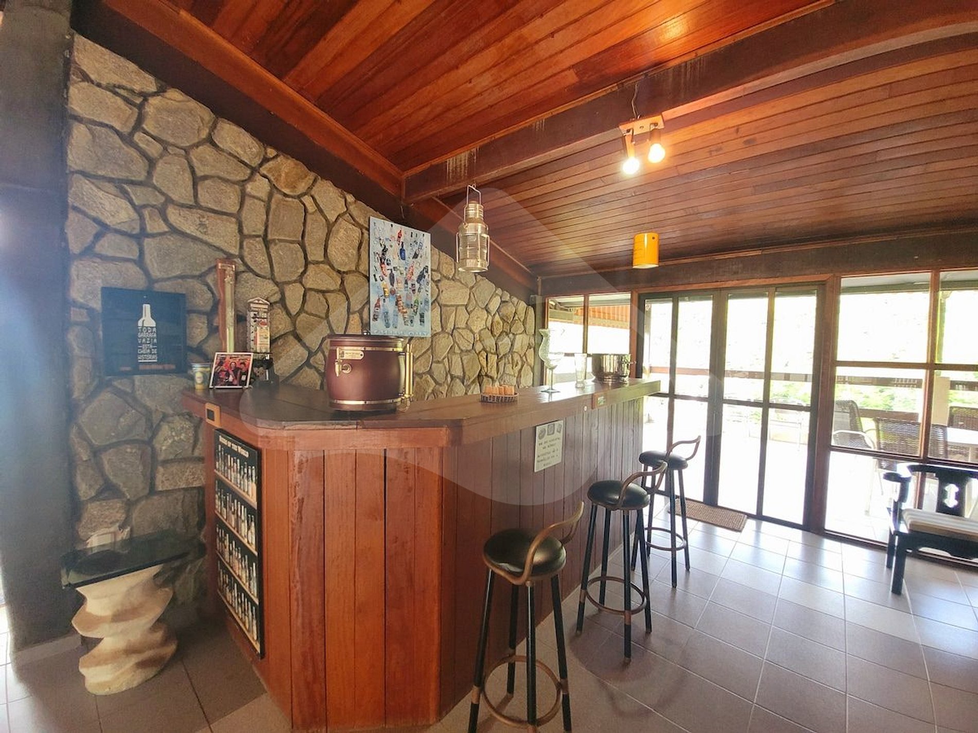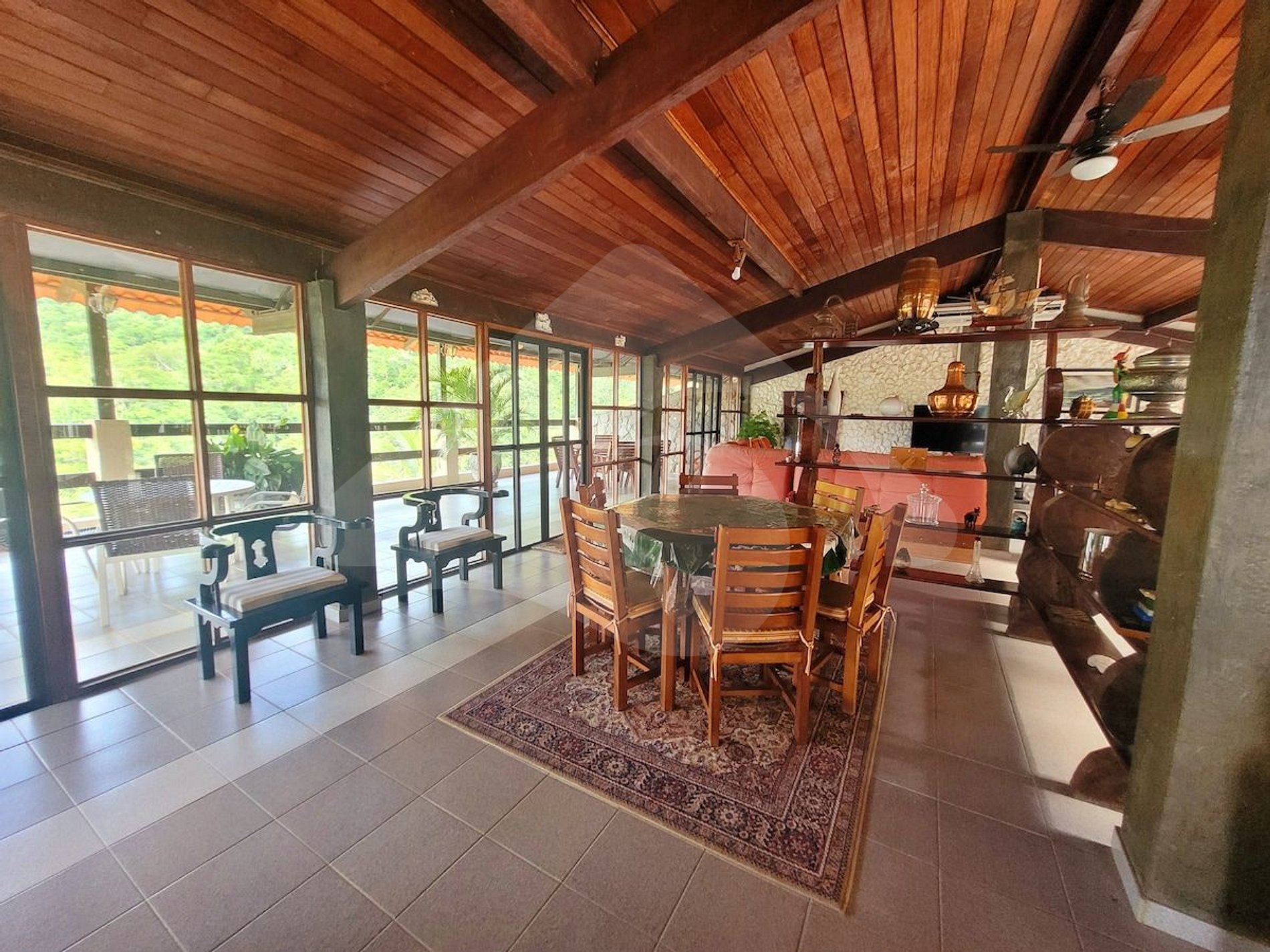 To make guests feel completely at home, the environment offers the best in leisure and relaxation. The pool with a waterfall is the central point for fun, while the large living spaces invite moments of unwinding. The barbecue area and outdoor meals with a wonderful view of nature complement the experience, providing a peaceful retreat away from the city's hustle and bustle.