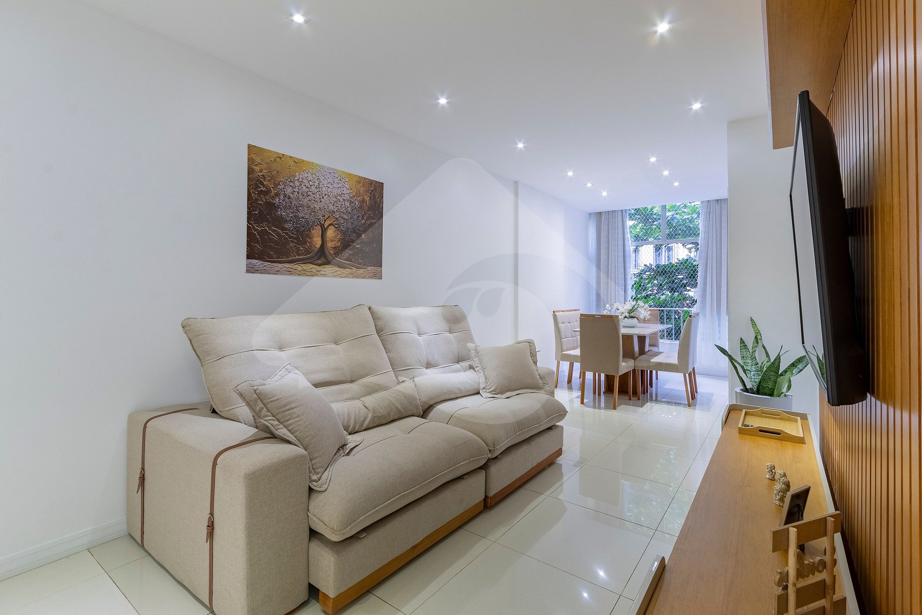 - Sala de estar integrada con el comedor: un ambiente moderno y acogedor, perfecto para relajarse, ver una película en el Smart TV o disfrutar de comidas juntos.