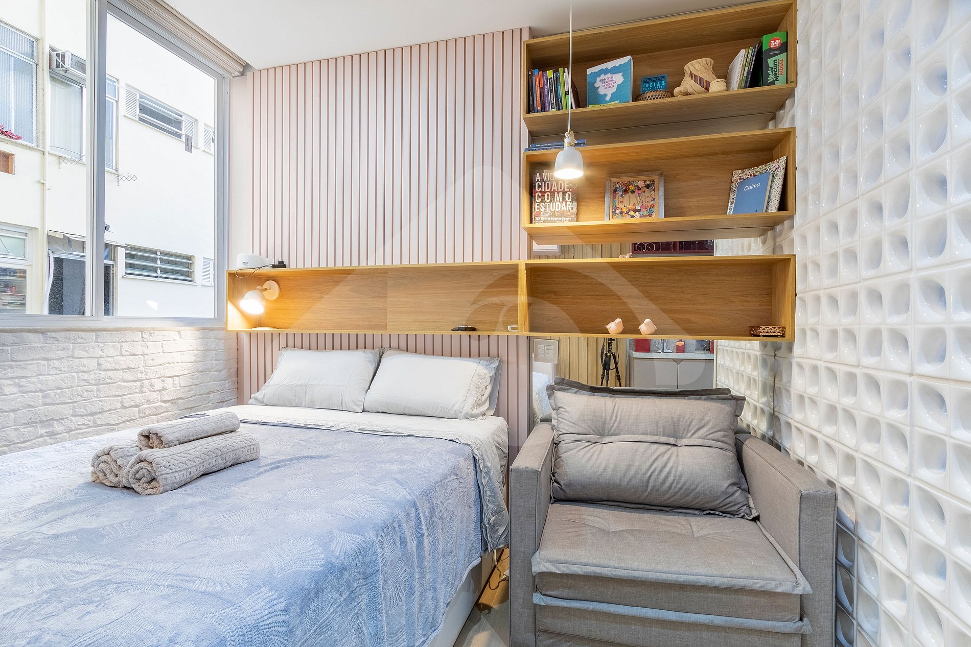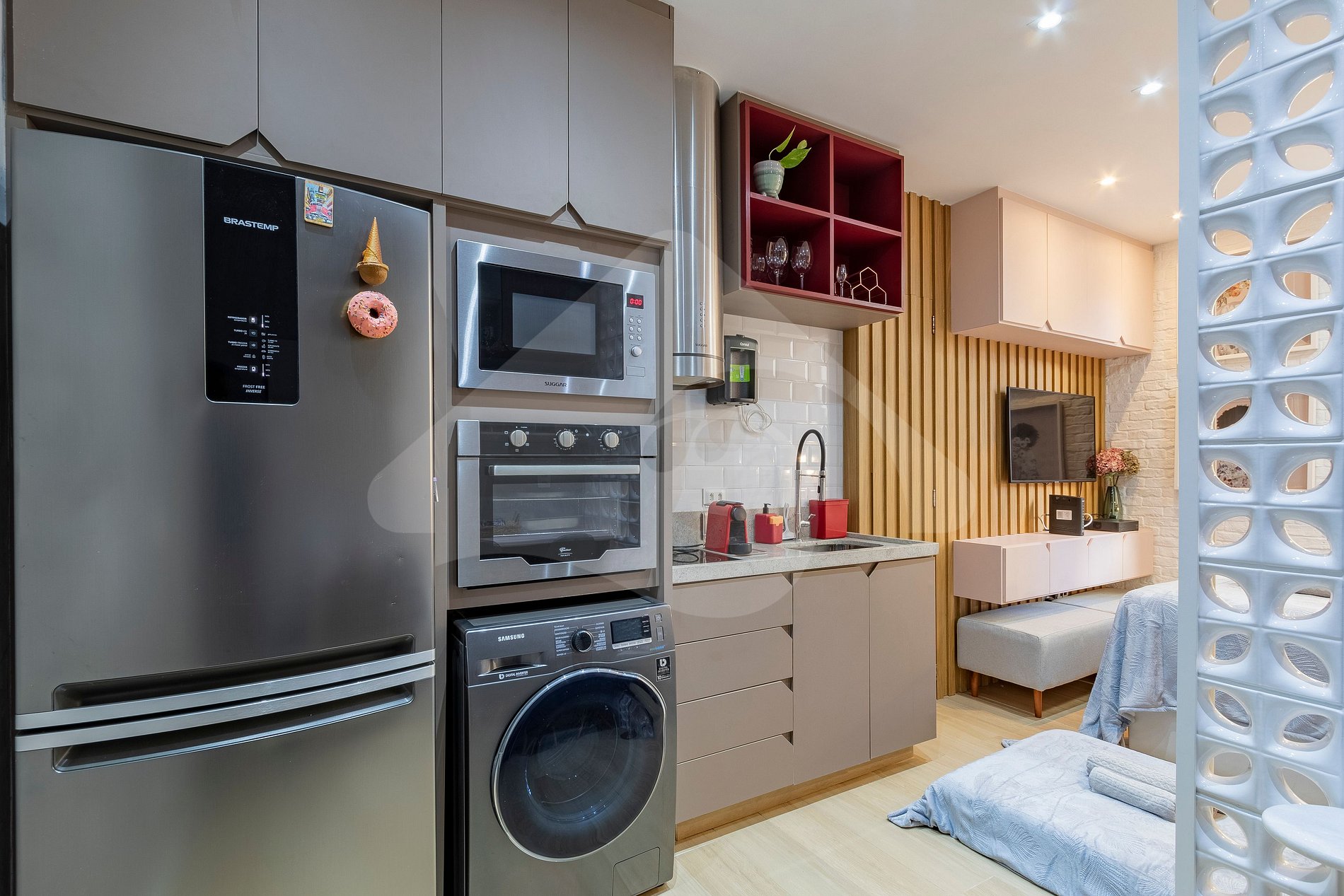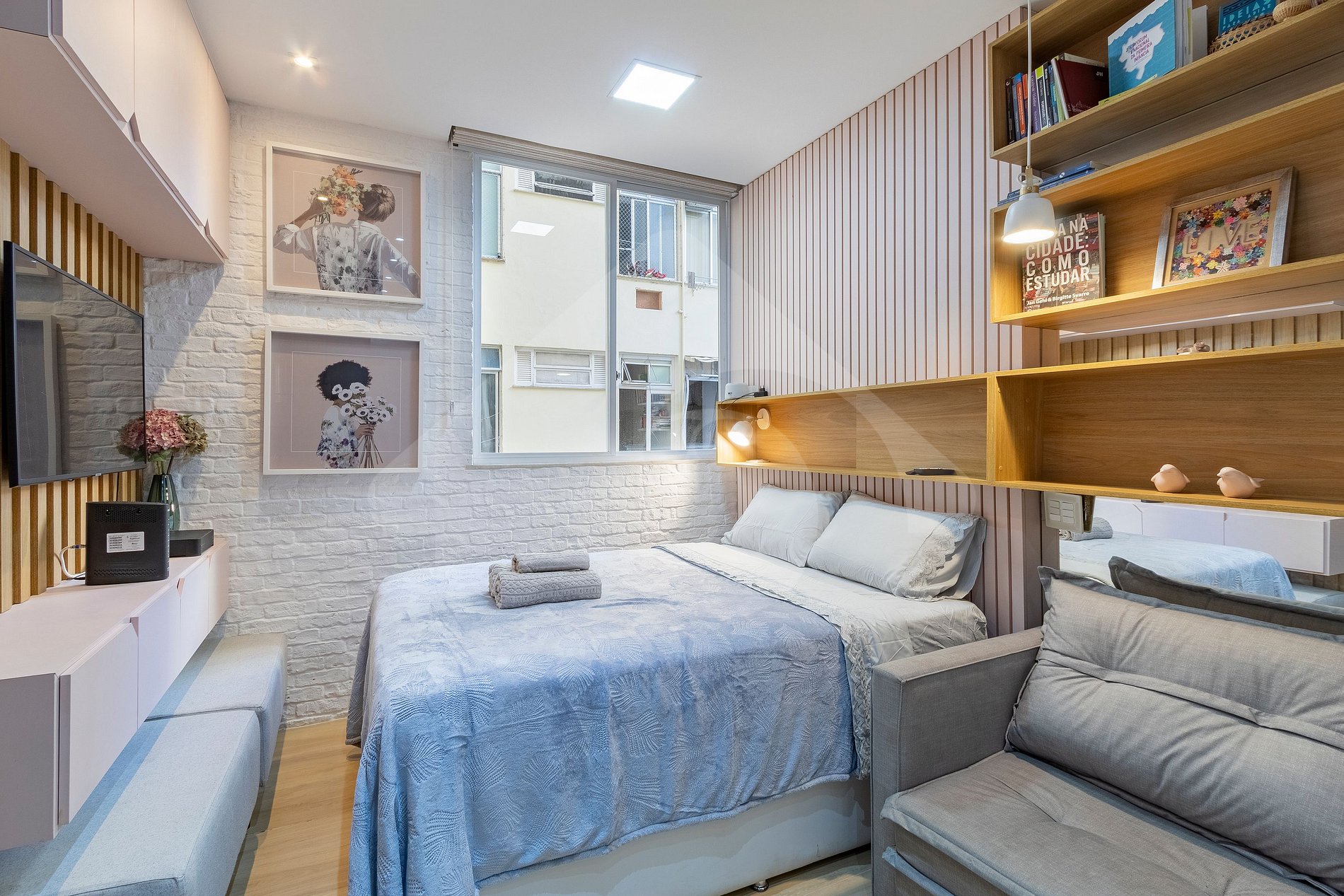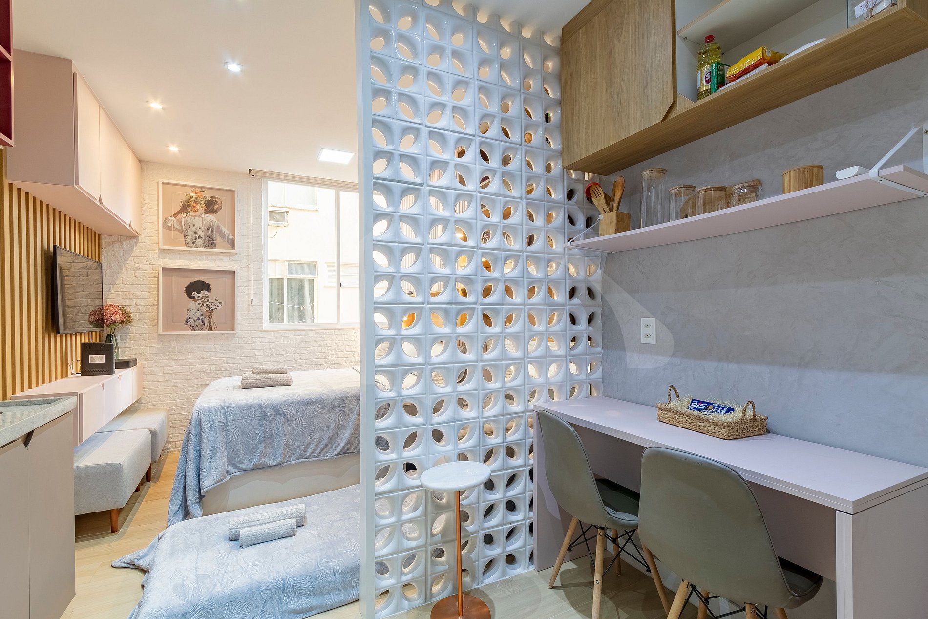 • Espaço: Nosso flat oferece um ambiente acolhedor e bem decorado, com móveis novos e uma decoração moderna que garantem uma atmosfera relaxante.