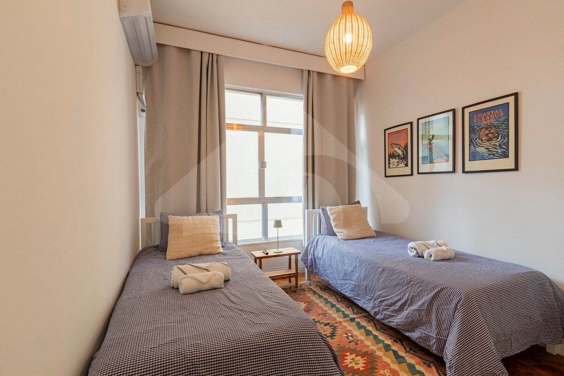 • Dois quartos confortáveis e iluminados, ambos equipados com ar-condicionado, camas confortáveis e armários espaçosos.