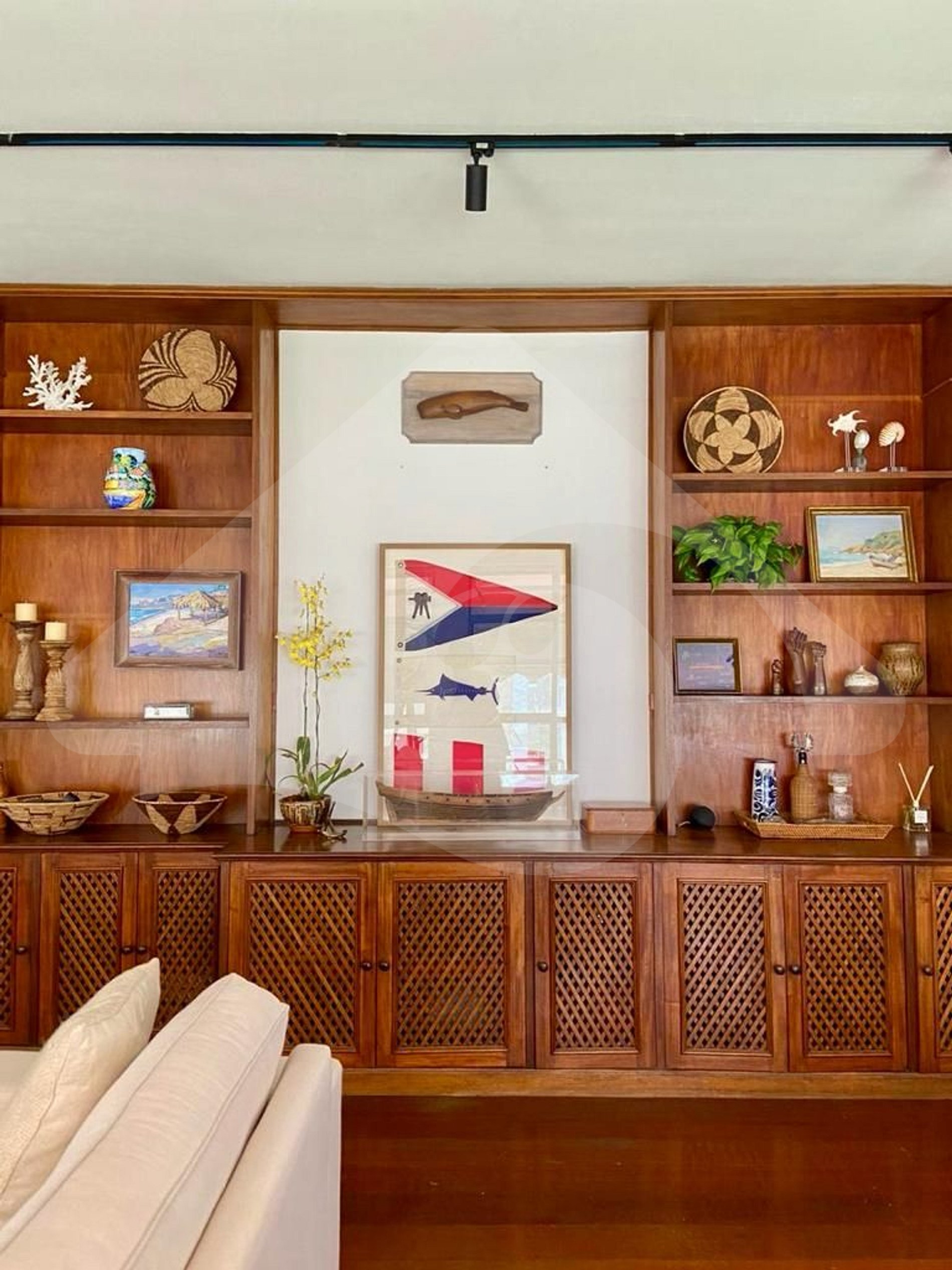 • Sala de estar grande e bem decorada, perfeita para relaxar após um dia de praia ou explorando a cidade.