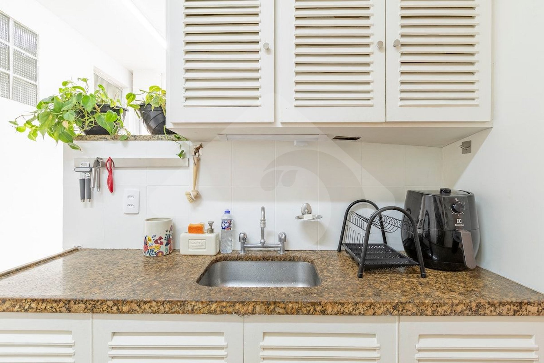 • Cozinha totalmente equipada, ideal para preparar refeições em casa, com fogão, geladeira, micro-ondas e utensílios variados.